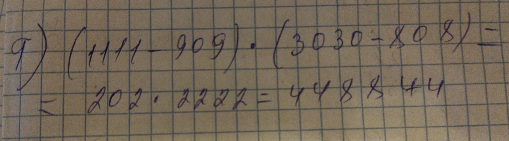 Г.Разность чисел 1111 и 909 умножить на разность чисел 3030 и 808.