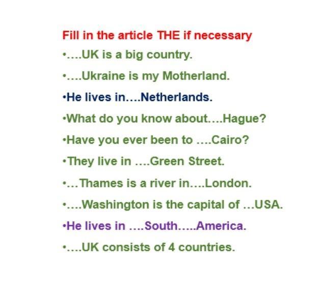 даю 50 балів! Виконай надіслану вправу: встав там, де потрібно, замість пропусків означений артикль The.