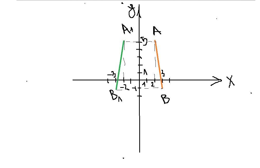 Дано відрізок АВ, кінці якого мають координати А(2; 5), B(3; -1). Побудуйте відрізок, симетричний відрізку АВ відносно осі ординат, та запишіть координати його кінців.