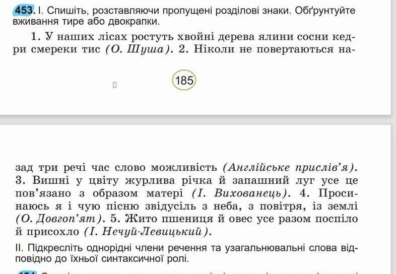 1. наших лісах ростуть хвойні дерева: ялини, сосни, кедри, смереки тис. 2. Ніколи не повертаються назад три речі: час, слово, можливість. 3. Вишні у цвіту, журлива річка й запашний луг, усе це пов'язано з образом матері.