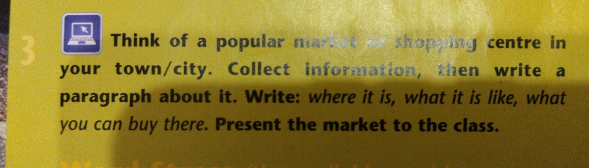 3 Think a popul shopping centre Callece it for Callece it forefa, en write a Write: whet like, what your town/city. paragraph and you can buy there. Pro the meets the class. про Костанай плаза