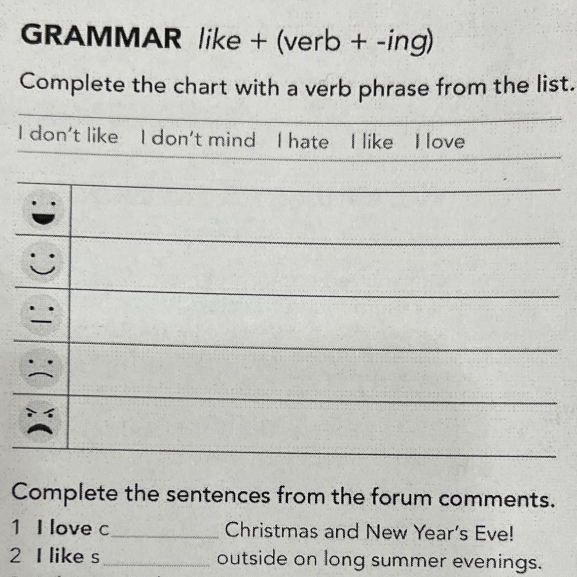 1 i love2 I like3. i hate 4.I don't like 5. i don't mind