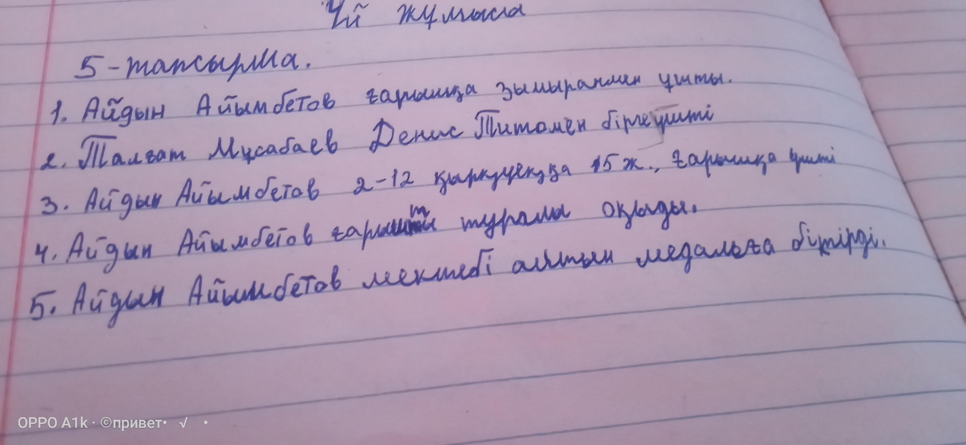 Көрсетейік және 5. Үлгі бойынша сөйлем құрап айт. Үлгі: Айдын Айымбетов ғарышқа зымыранмен ұшты. Кіммен? Немен?