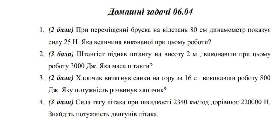 1. A = Fs = 25 × 0.8 = 20 (Дж)