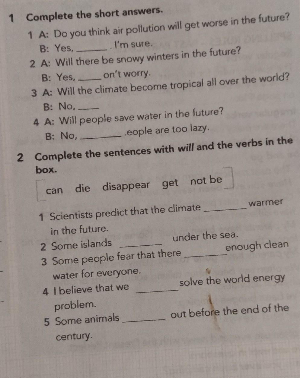 2) 1.will get; 2.will disappear;3. won’t be;4.will can; 5.will die.