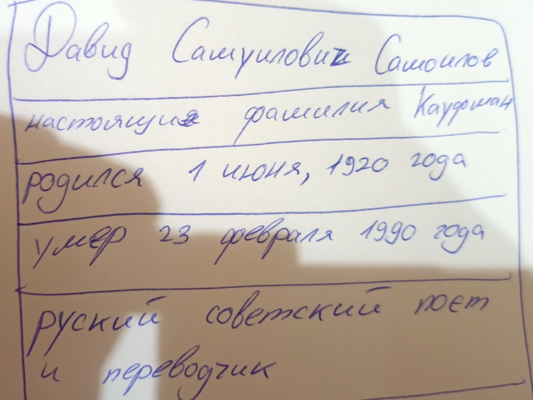 Давид Самуилович Самоилов (настоящая фамилия-Кауфман 1 июня 1920, москва-23 февраля 1990) русский советский поэт и переводчик. Один из крупнейших представителей поколения поэтов, ушедших со студенческой скамьи на фронт.