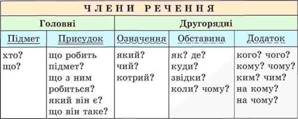 Визначте головні та другорядні члени