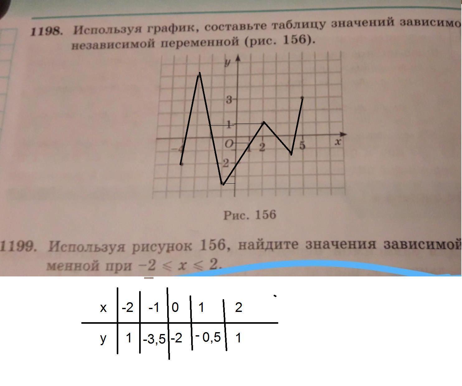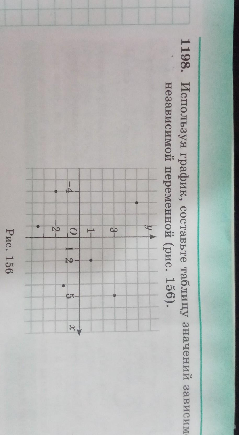 1198. Используя график, составьте таблицу значений зависимой и независимой переменной (рис. 156).