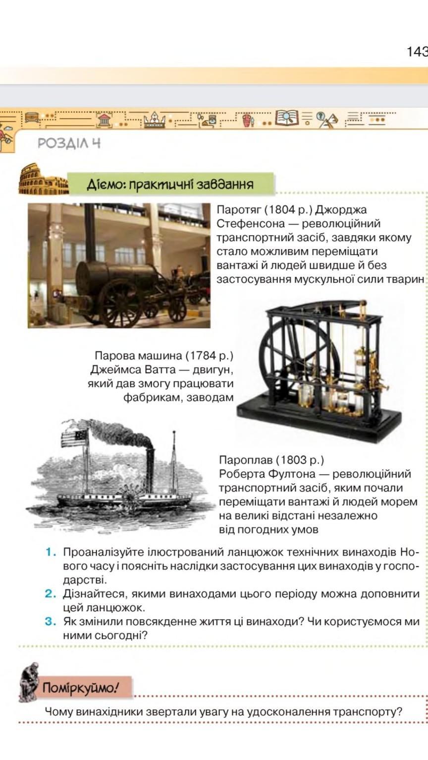 Винаходи покращили умови життя людей. так, ми використовуємо багато винаходів 19 століття і сьогодні. Чому винахідники звертали увагу на удосконалення транспорту? Удосконалення транспорту пришвидшувало обсяги і швидкість перевезення вантажів та пасажирів, що сприяло розвитку господарства і торгівлі