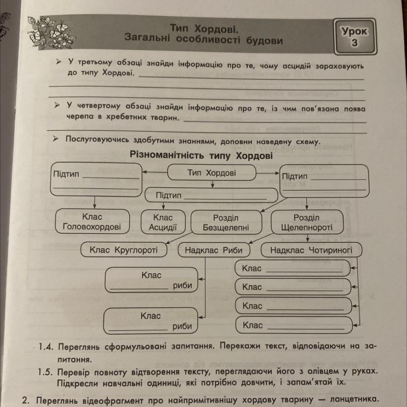 Тип Хордові об'єднує близько 50 тис. видів (з них в Україні — 700), які належать до трьох підтипів: Безчерепні (ланцетники), Покривники (асцидії, вогнетілки) та Черепні, або Хребетні (риби, земноводні, плазуни, птахи, ссавці).