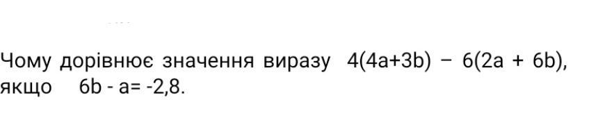 4(a - 6b) = -4(6b - a) = -4*(-2,8) = 11,2