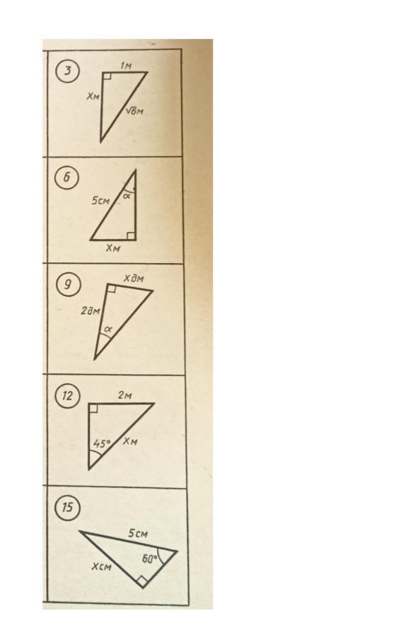 15. х = 5sin60° = 5 *√3/2 = 2,5√3 (см)