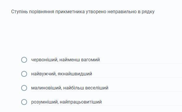 не утворює ступінь порівняння прикметник малиновий, оскільки це є якісний прикметник, який означає колір й утворений за кольоровою схожістю до інших предметів.