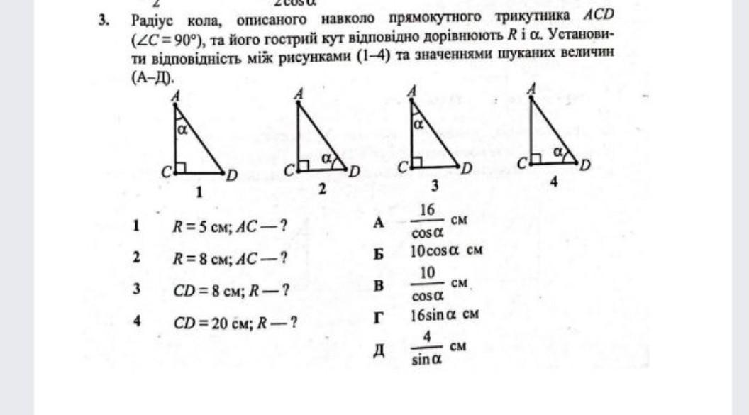 R = AD/2 = 20/cos(a) : 2 = 10/cos(a) - відповідь В )