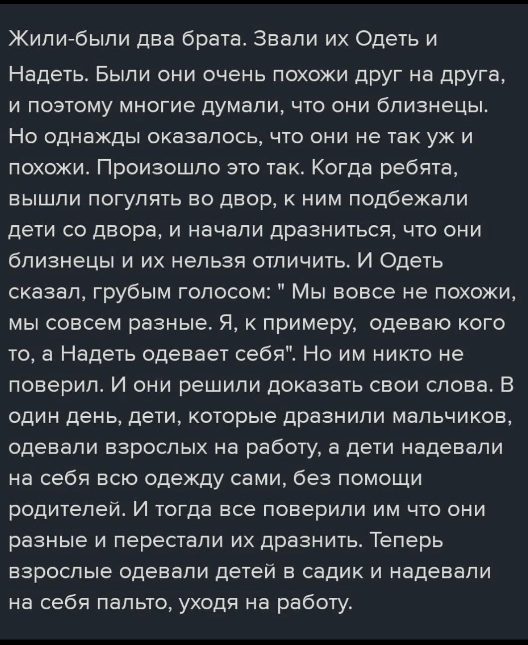 Напишите короткую грамматическую сказ- ку «Братец Надеть и Братец Одеть», начинающуюся словами: «Жили-были два брата - Надеть и Одеть. Были они похожи как две капли воды. Похожи, да не совсем»