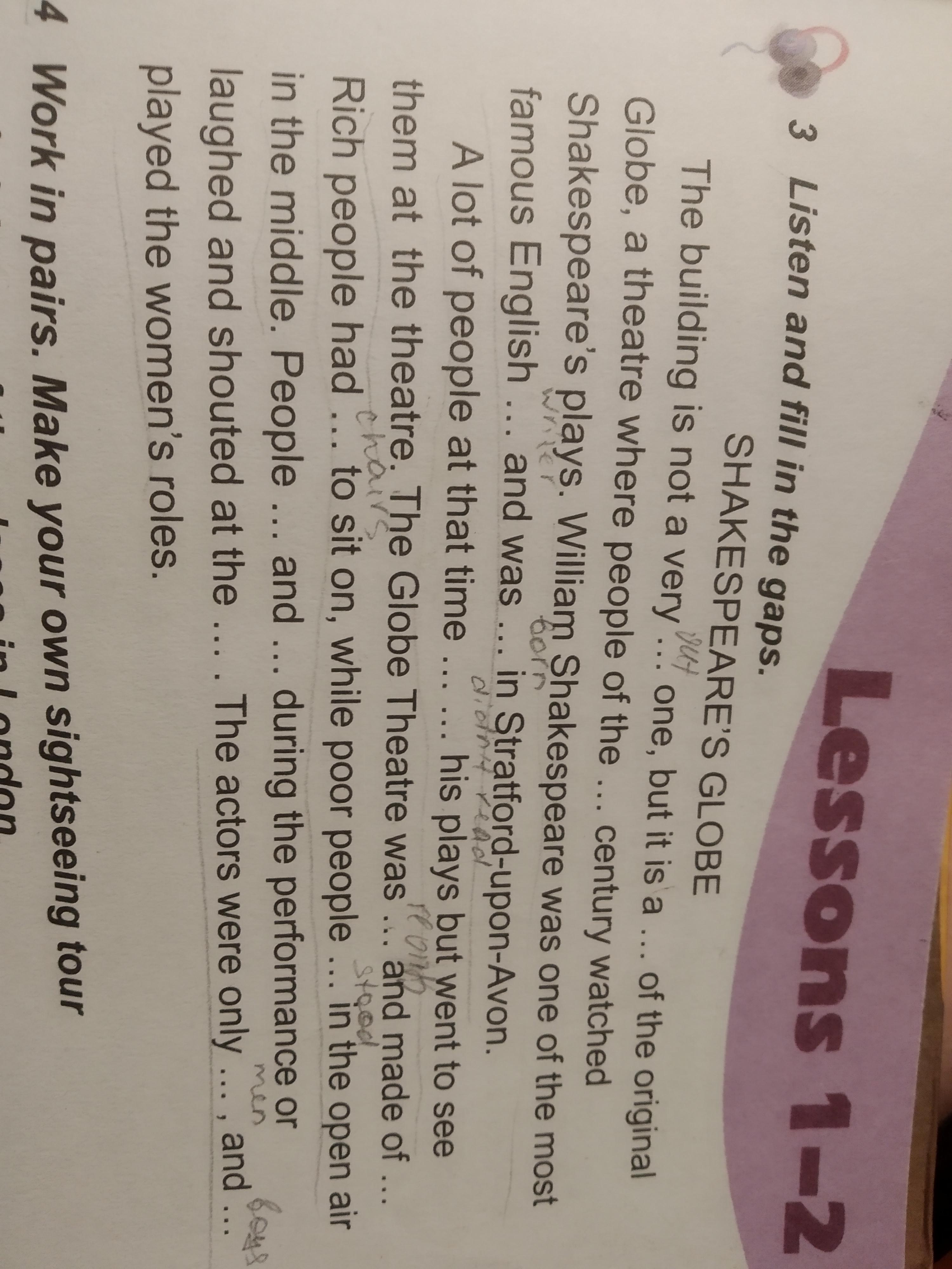 Помогите пожалуйста, нужно написать текст про театр Шекспира на английском пользуясь текстами на страницах