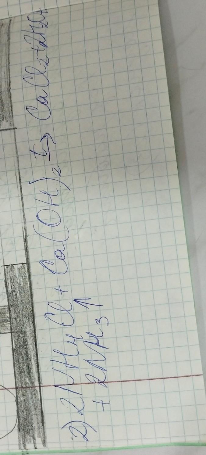 Это химическое уравнение реакции между хлоридом аммония (NH4Cl) и гидроксидом кальция (Ca(OH)₂), которая приводит к образованию хлорида кальция (CaCl2), воды (H2O) и аммиака (NH3).