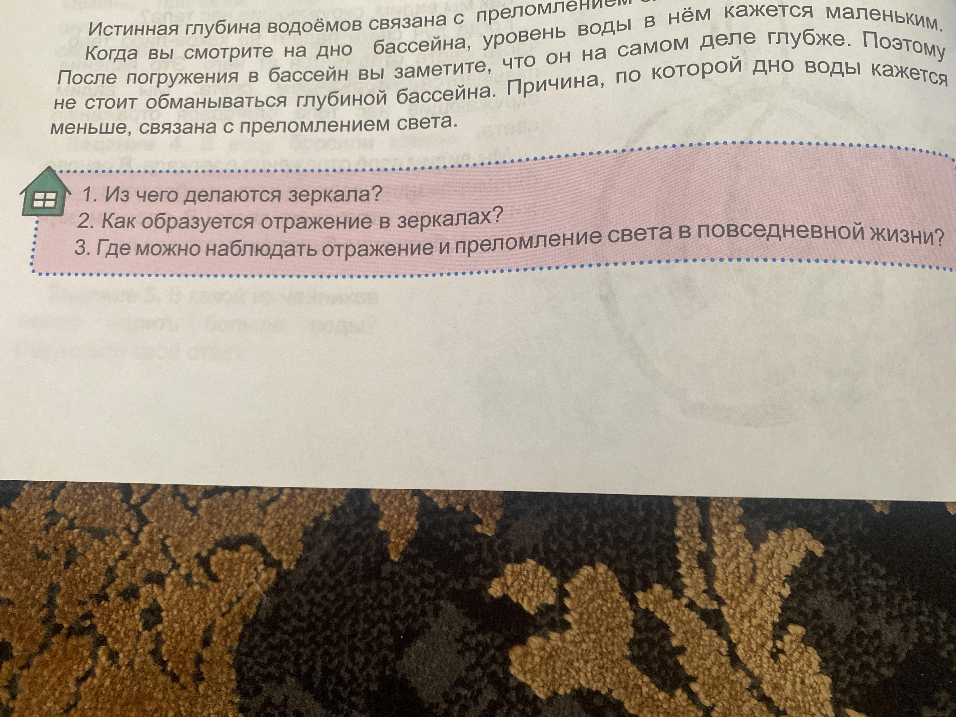 зеркала это стекло, а стекло делается из песка. отражение образуется от стекла. в воде