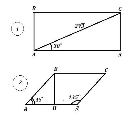 1) Диагональ АС прямоугольника АВСД равна 2√3 см , угол