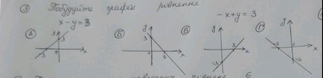 Щоб побудувати графік рівняння -x + y = 3, спочатку перетворимо його на форму, яка виражає y через x: