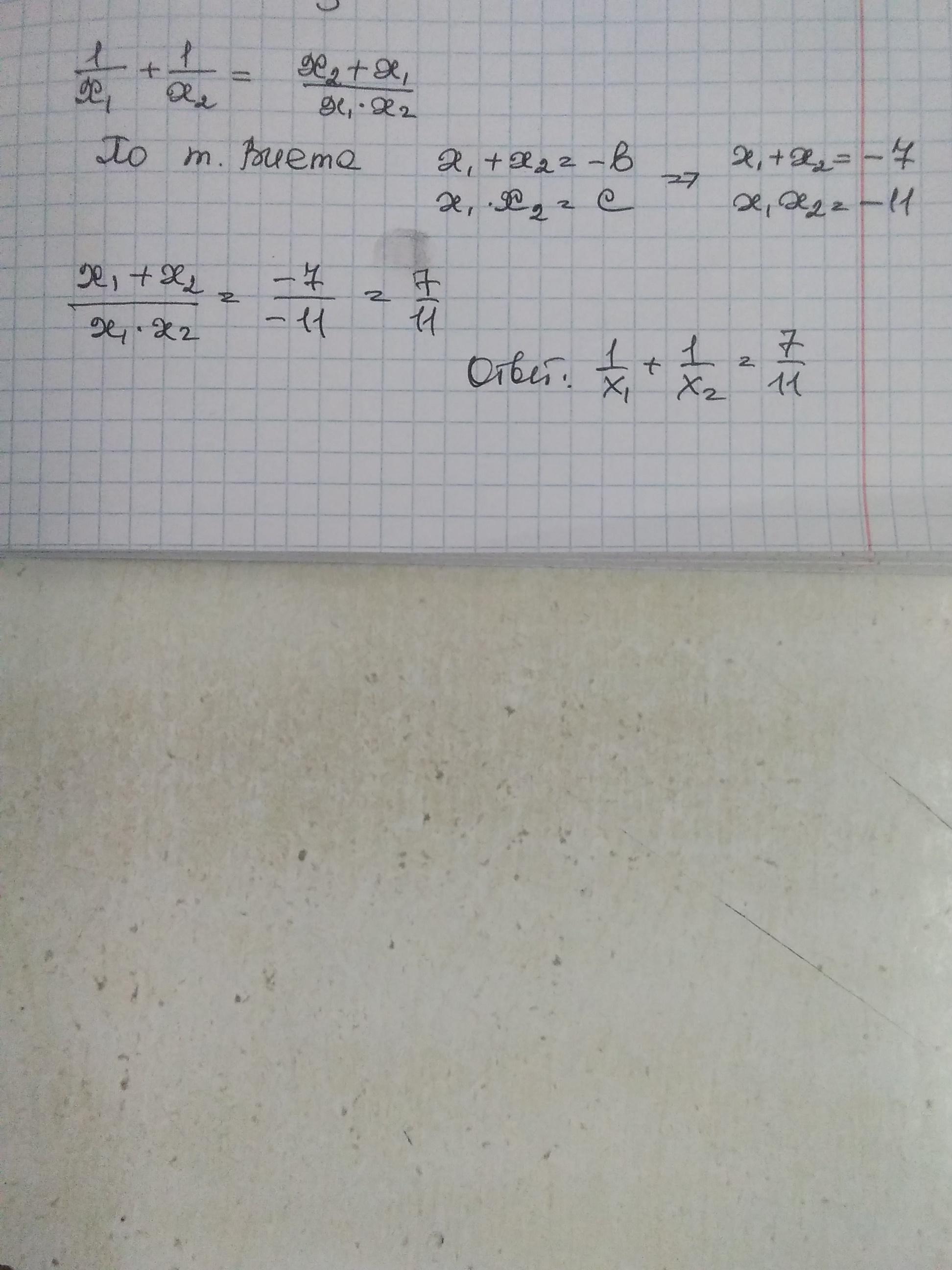 нехай х¹ і х² - корені рівняння х²+7х-11=0. Не розв'язуючи рівняння, знайдіть значення виразу 1/х¹+ 1/х²