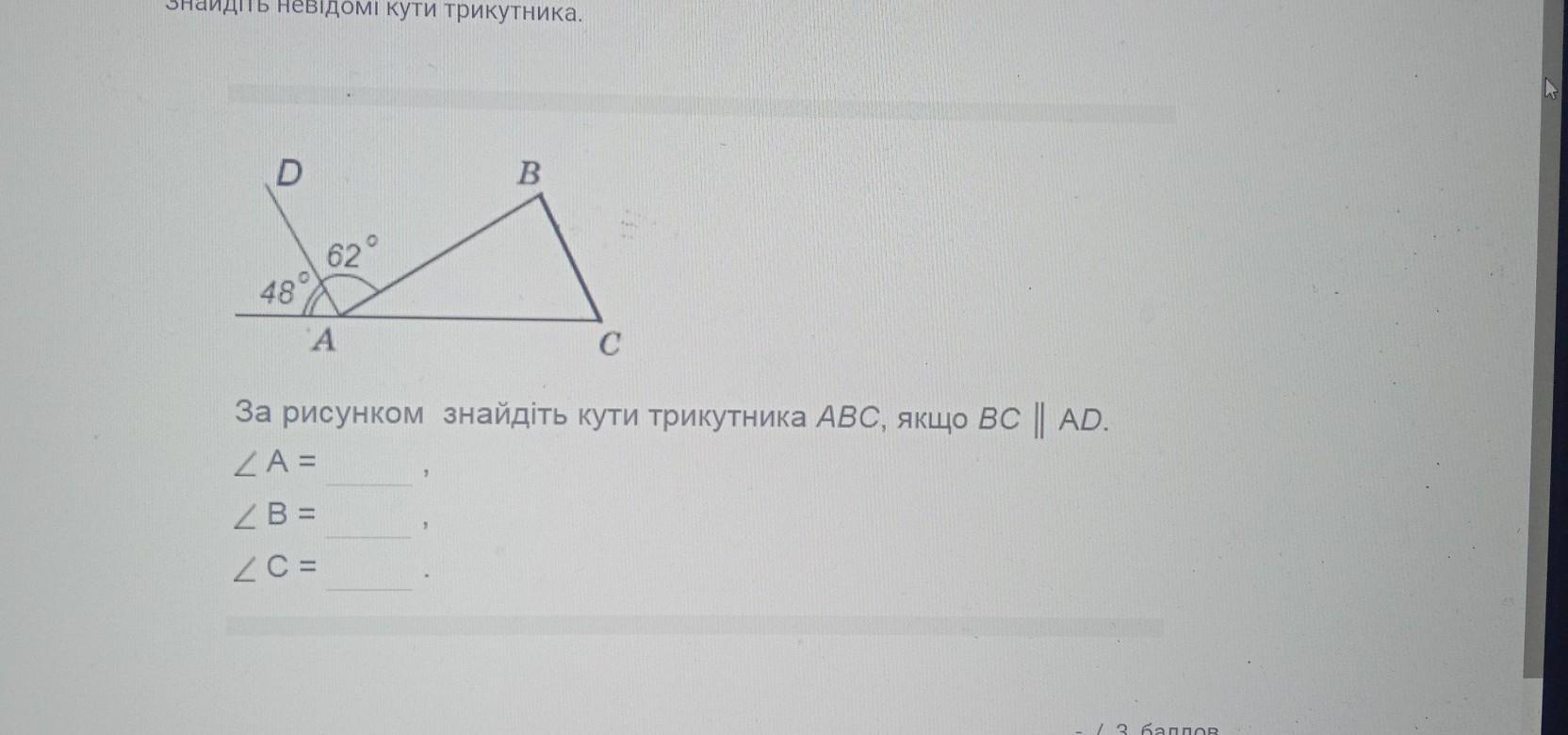 угол В = угол ВАД = 62° (накрест лежащие углы)