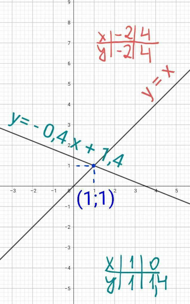у = -0,4х +1,4