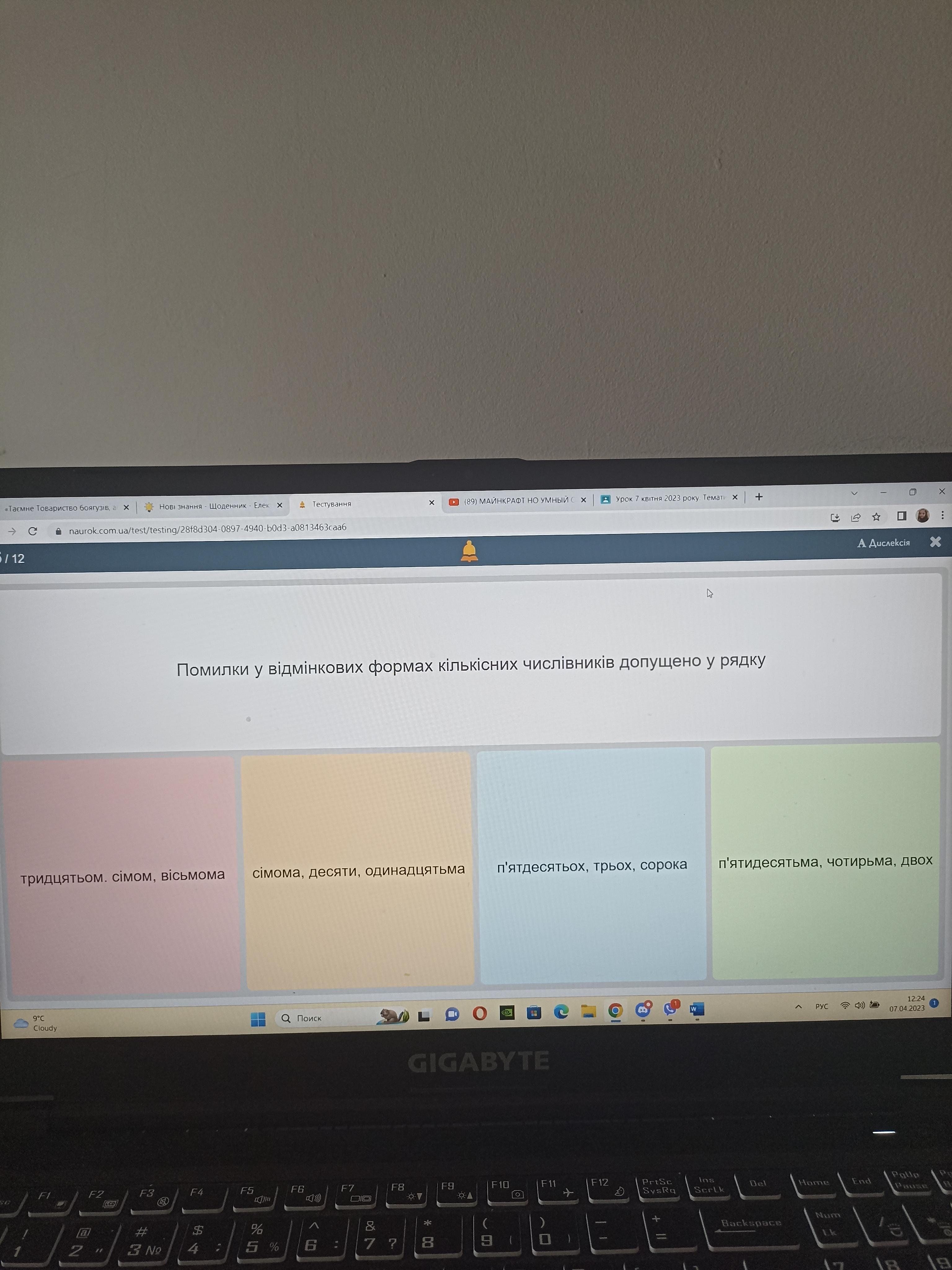 Помилки у відмінкових формах кількісних числівників допущено в рядку: