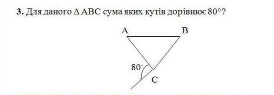 Кут С дорівнює 100⁰ за теоремою про суміжні кути, значить, за цією ж теоремою сумма кутів А і В дорівнює 80⁰
