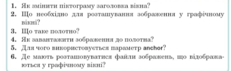 2) Для розташування зображення у графічному вікні необхідно використовувати графічні бібліотеки, такі як OpenGL, DirectX або Qt. Кожна з них має свої власні методи для роботи з зображеннями, але загалом процес складається з завантаження зображення в пам'ять, створення текстури і відображення її на екрані.