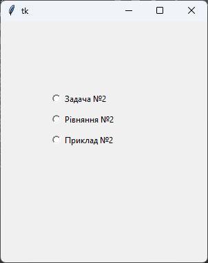 task3_rb = tk.Radiobutton(root, text="Приклад №2", variable=var, value="task3")