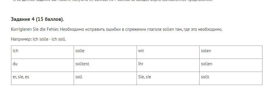 Bilden Sie die Sätze mit sollen. Необходимо построить предложения с глаголом sollen, используя предложенные слова. При составлении предложений обращайте, пожалуйста, внимание на форму глаголов в предложении.