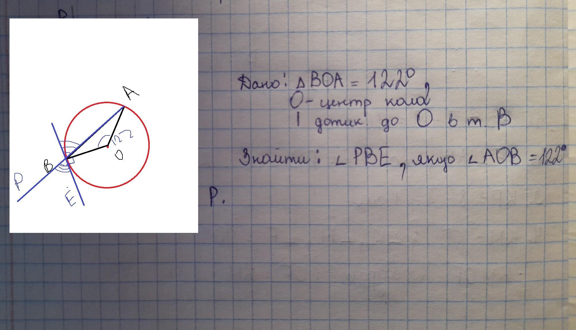 Розглянемо ΔОАВ, де ОА=ОВ=R, ∠ВОА=122 °.