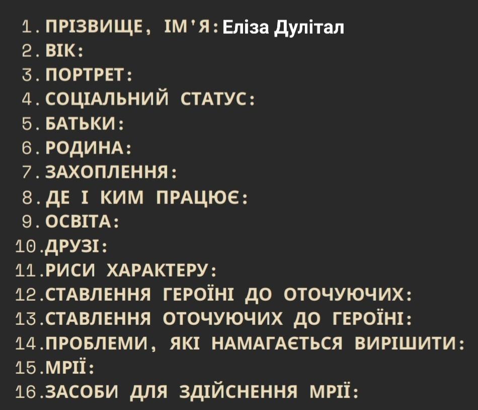16. Завдяки лінгвісту Генрі Хіггінса, вона стала елегантною та красивою дамою з високою культурою.