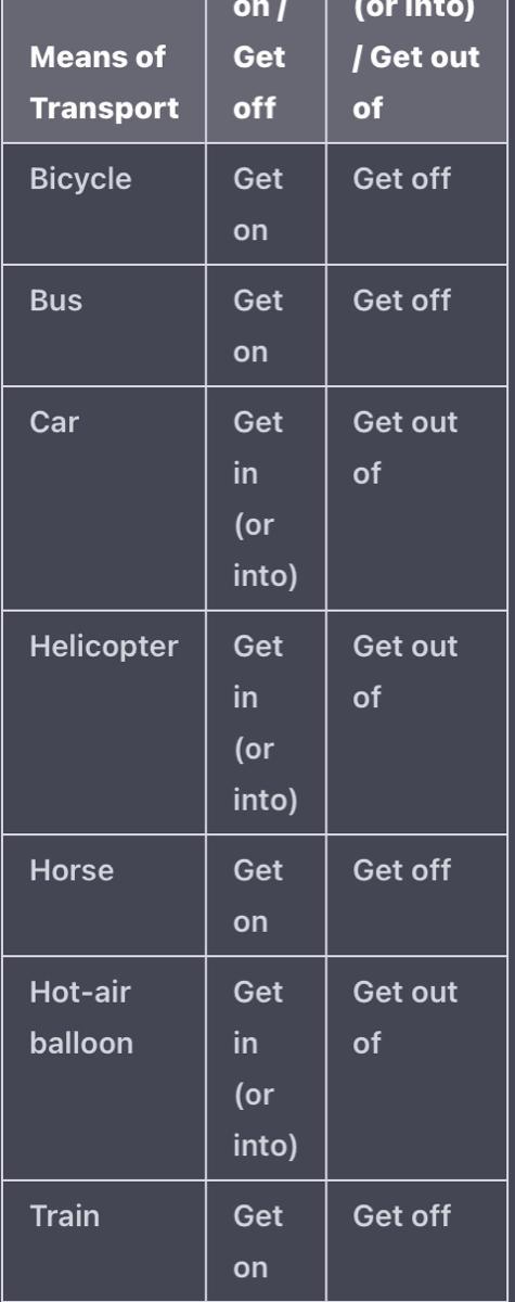 bicycle •bus •car• helicopter• horse •hot-air balloon • train •plane • motorbike• ferry• ship• rowing boat• taxi • trolleybus •