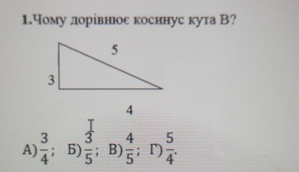 Косинус кута прямокутного трикутника - це відношення прилеглого катету до гіпотенузи