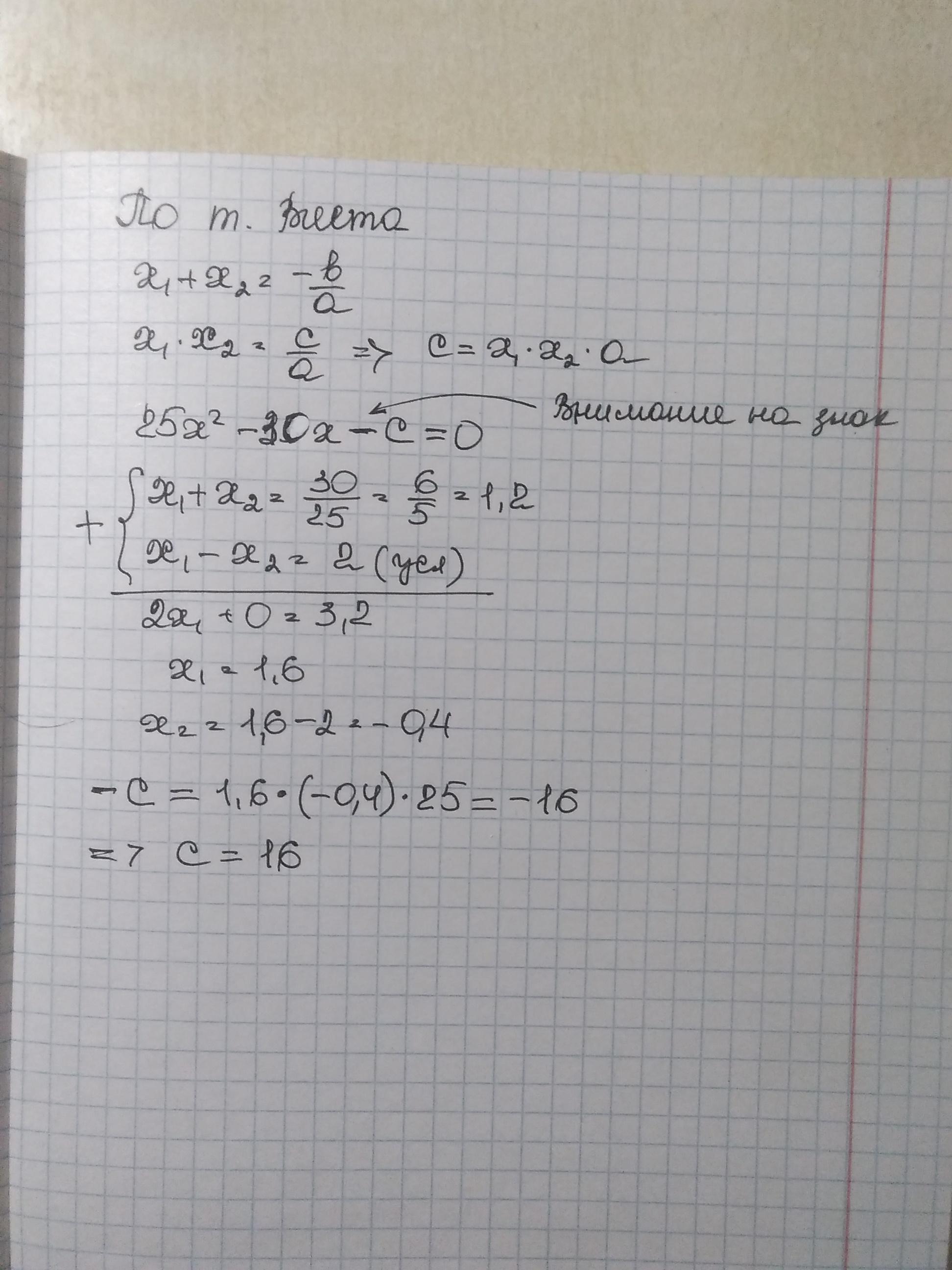 Різниця коренів рівняння 25х²-30х-c=0 дорівнює 2. Знайти с