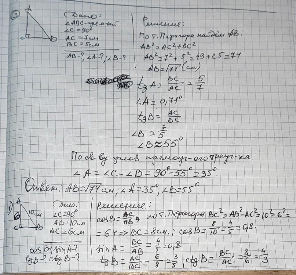 АВ=√(АС²+ВС²)=√(7²+5²)=√74 см