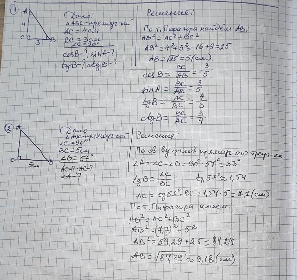 АС=BC•tgB=5•tg57≈5•1,54≈7,70 см