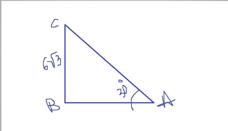 5.У прямокутному трикутнику ABC, кут CAB = 30 deg BC = 6коринь3 Знайти АС.
