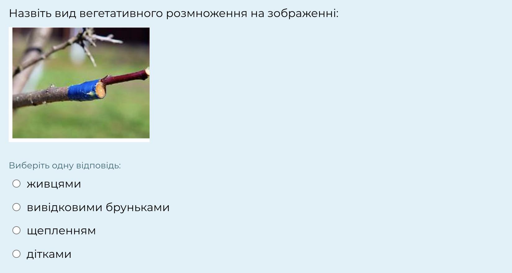 У садівництві щеплення застосовують з давніх часів. Плодові дерева — яблуні, груші, сливи, вишні — часто розмножують щепленням. Бруньку — вічко або живець культурної рослини зрощують зі стеблом дички. Дичка (дичок)— молода рослина, вирощена з насіння плодового дерева.