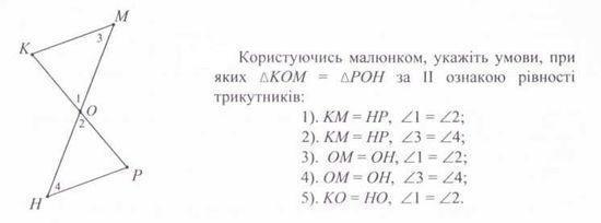 2 признак это по стороне и прилежащим к ней углам, а как мы видем KM и HP прилежащие
