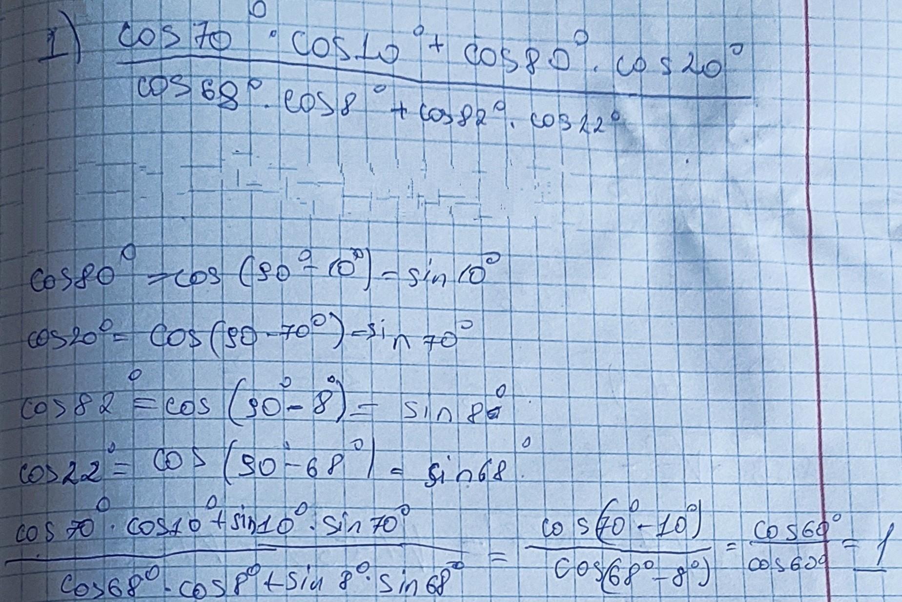 COS70° * COS10°+COS80° * COS20°/COS68° * COS8°+COS82° * COS22°