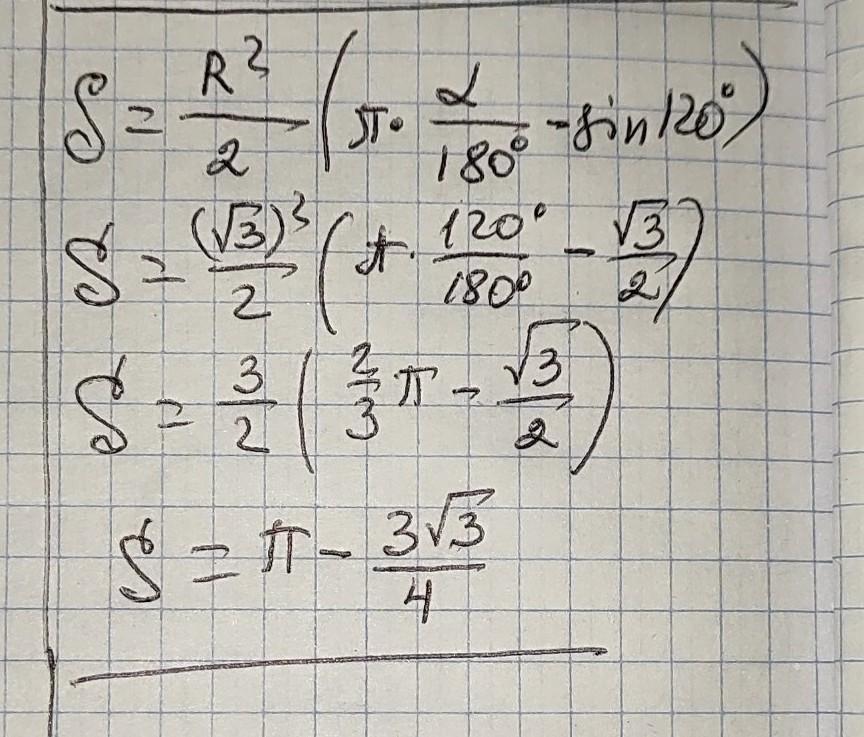S₍ₐ₎ = ¹/₂ *(π*120°/180° - sin120°)* (√3)²