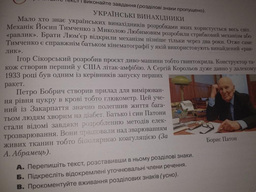 Петро Бобрич створив прилад для вимірювання рівня цукру в крові, а саме глюкометр. Цей учений із Закарпаття значно полегшив життя багатьом людям, хворим на діабет. Батько і син Патони стали відомі завдяки розробленим методам електрозварювання. Вони працювали над зварюванням живих тканин, а саме біполярною коагуляцією. (За А. Абрамець).
