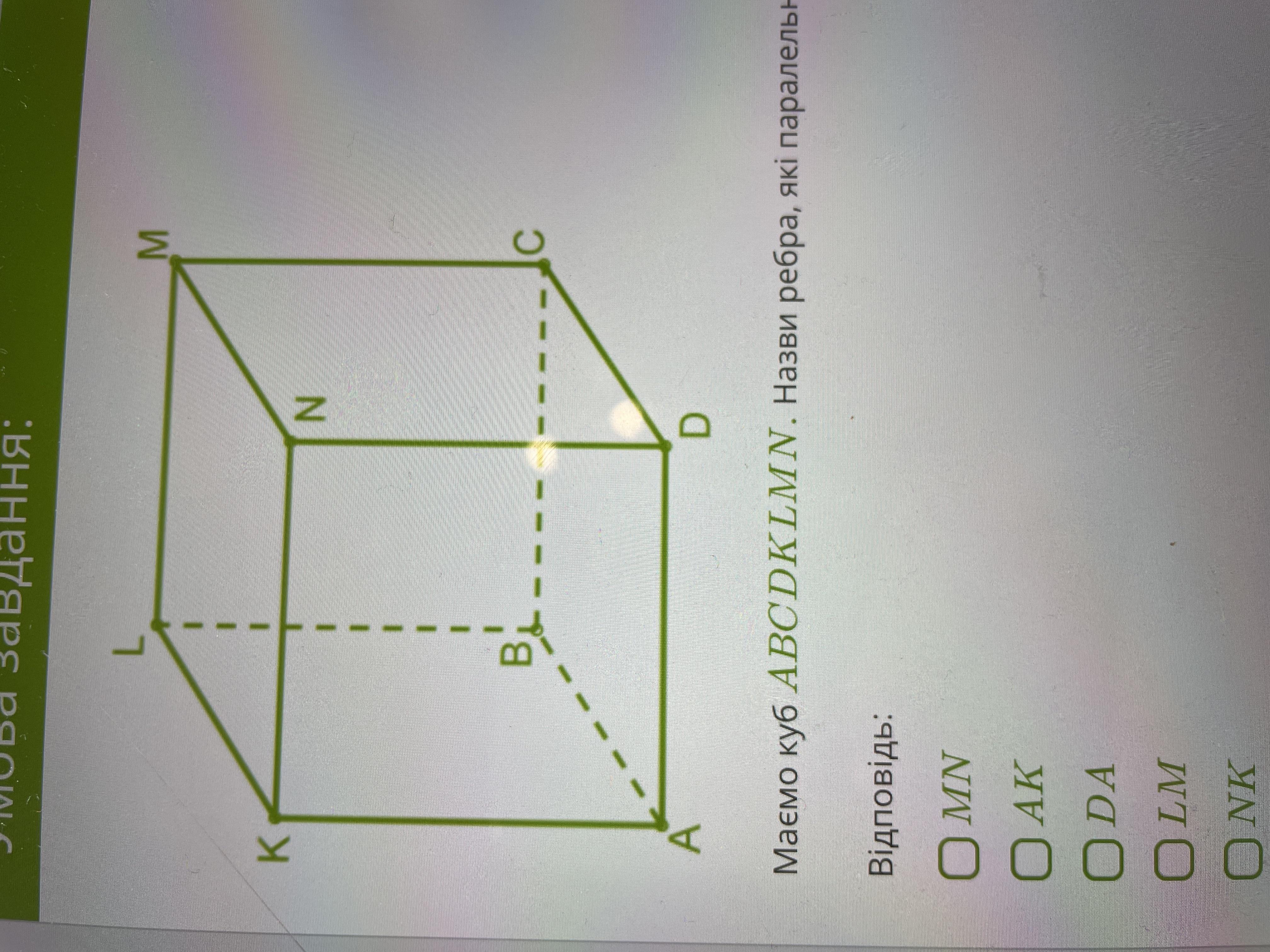Ребру DN паралельні такі ребра: MC, BL, AK