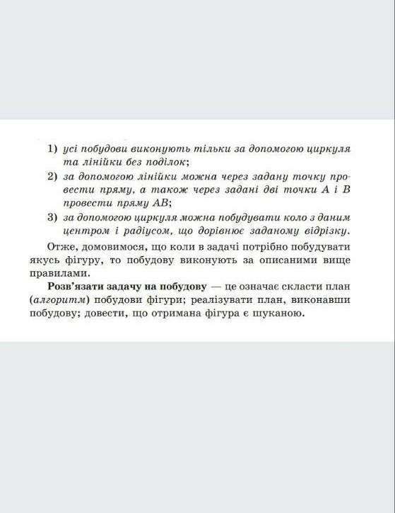 Всі побудови проводяться тільки за допомогою циркуля і лінійки без поділок.
