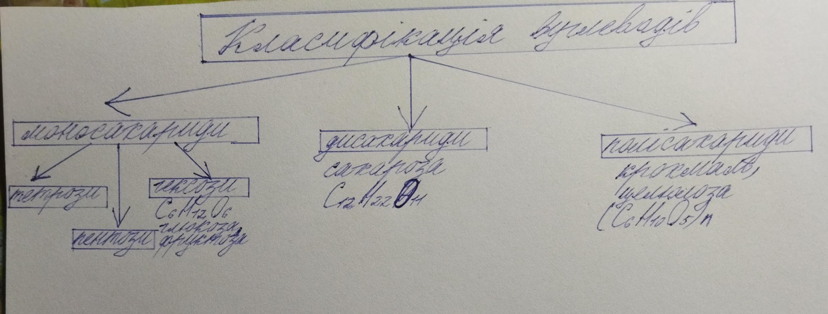 1. Моносахариди: це найпростіші вуглеводи, які не можуть бути розщеплені на менші зв'язані молекули. Приклади моносахаридів: глюкоза, фруктоза, галактоза.