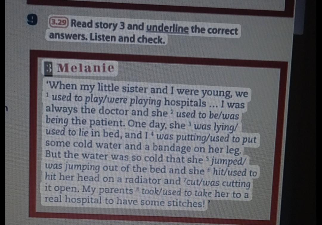 When my little sister and I were young, we used to play hospitals.I was always the doctor and she used to be the patient. One day she was liyng in bed, and I was putting some cold water and a bandage on her leg.But the water was so cold that she jumped out of the bed and she hit her head on a radiator and cut it open. My parents took her to a real hospital to have some stitches!