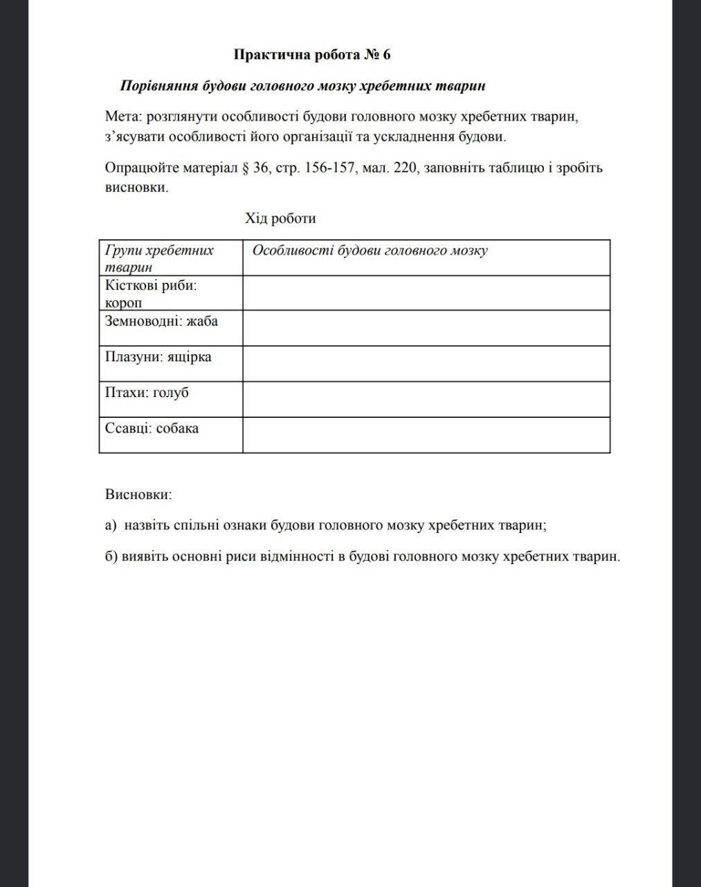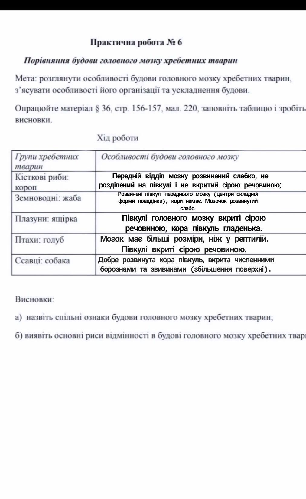 б). У зв’язку з особливостями умов життя розвиток частин головного мозку у різних класів хребетних тварин не однаковий і має свої характерні особливості.
